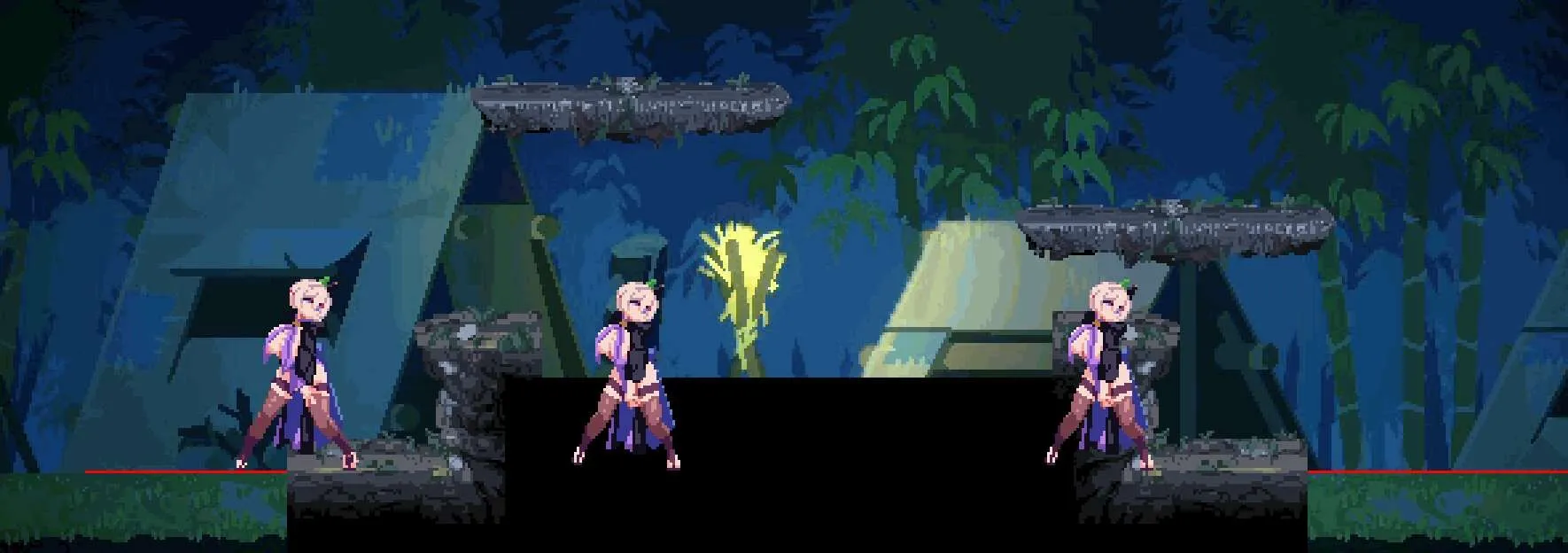 PS:RenpyThief可用,对话不能翻译 体验版 v0.1.0 更新内容重制了序章和第一章的场景。相关事件存在未实装部分,将陆续追加(请稍等)。 追加了新动作“攀爬”。现在可以移动到更高的平台。 追加了新元素“隐藏通道”。可以在隐藏通道中潜伏,并通过臀部颜色诱惑敌人。 增加了卷轴技能切换UI。 追加了新忍术“回复术”。 实装了序章和第一章的部分CG。 改善了游戏流程。关卡通关后,无需返回城镇即可直接继续任务。 优化了部分攻击动画。 进行了其他各种优化和调整。